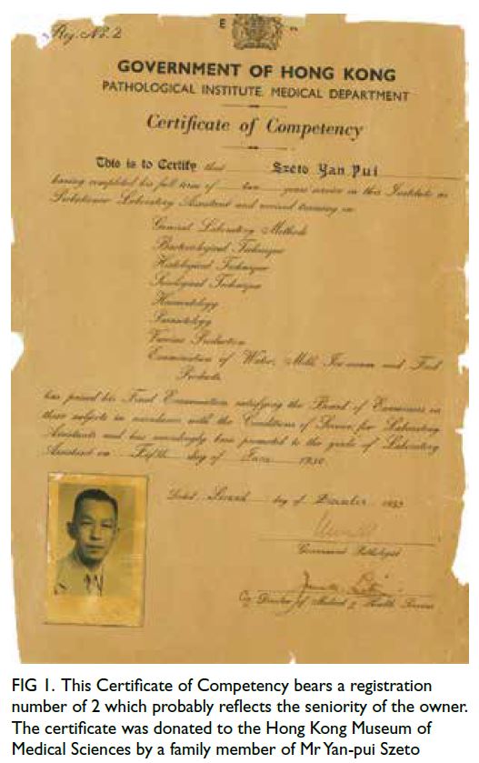 Figure 1. This Certificate of Competency bears a registration number of 2 which probably reflects the seniority of the owner. The certificate was donated to the Hong Kong Museum of Medical Sciences by a family member of Mr Yan-pui Szeto
