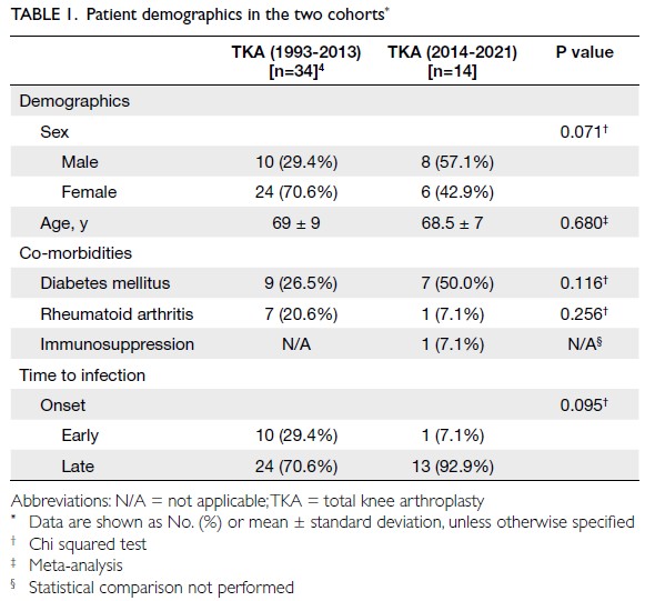 Infection Society criteria. Patient demographics, PJI
