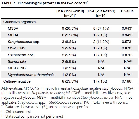 microbiological patterns of PJI between the cohorts.