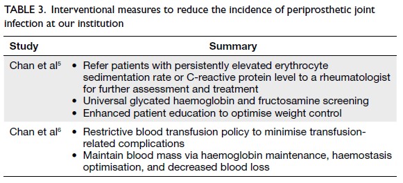 efficacy of interventions to reduce PJI incidence and