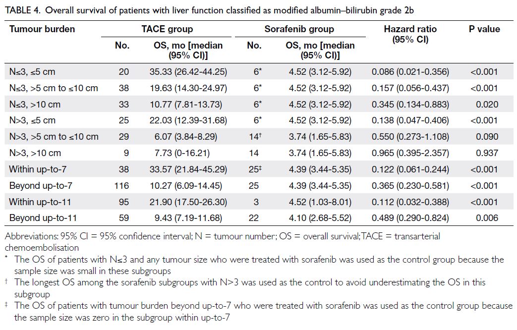 additional subgroups: those with mALBI grade 2b and tumours with number ≤3 and size >10 cm, and