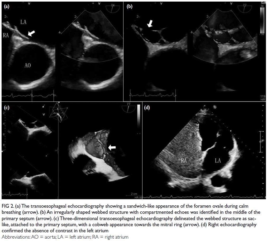 Three video clips showing the webbed left atrial septal pouch and contrast flow are available at www.hkmj.orgCase presentation