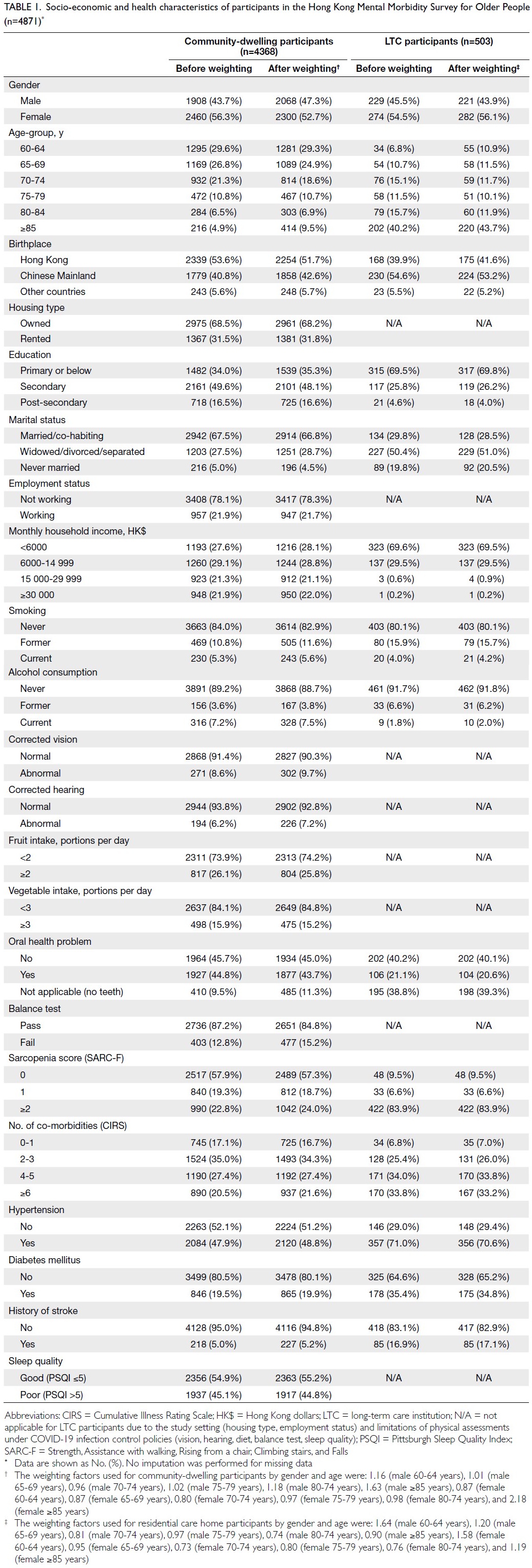 of the Hong Kong Mental Morbidity Survey for