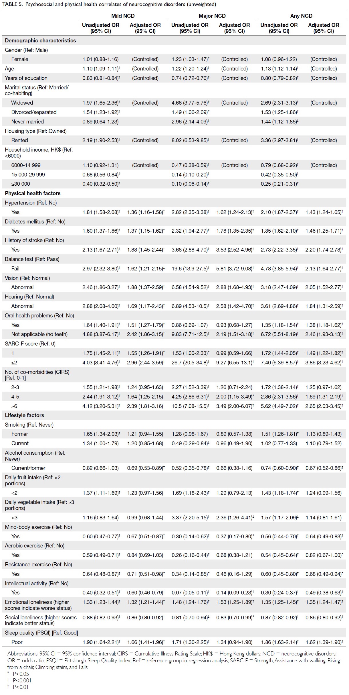 4. Lam LC, Tam CW, Lui VW, et al. Prevalence of very mild and mild dementia in community-dwelling older Chinese people in Hong Kong. Int Psychogeriatr 2008;20:135-48. Crossref