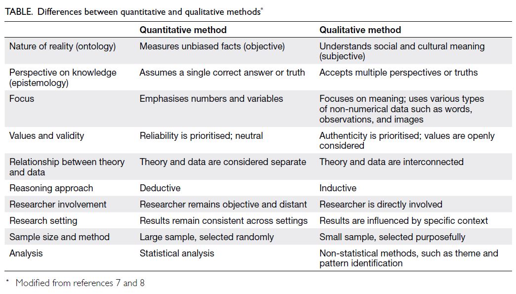 Table. Differences between quantitative and qualitative methods