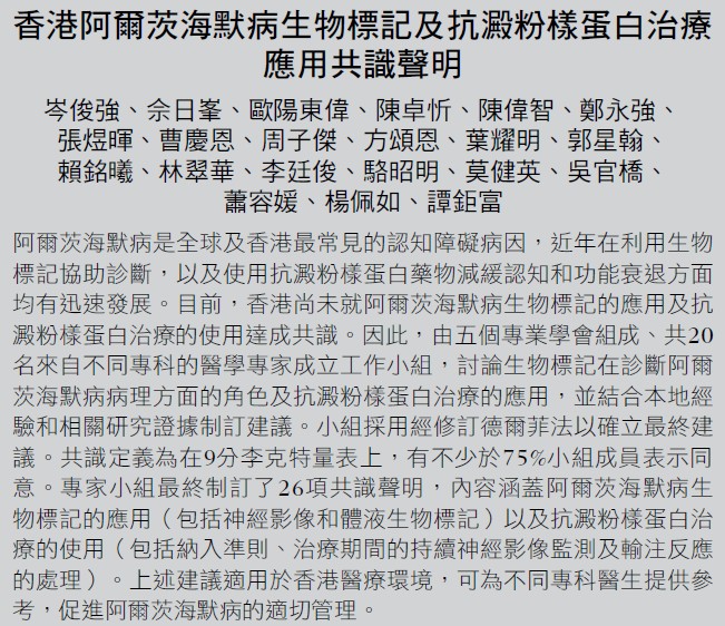 YF Shea reported acting as a member of the Eisai Hong Kong Lecanemab Advisory Board in 2024. Other authors disclosed no conflicts of interest.
